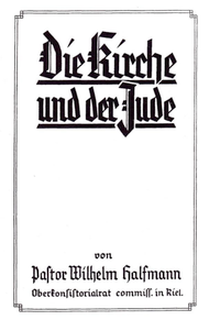 Heft 11: Die Kirche und der Jude. Von Pastor Wilhelm Halfmann, Oberkonsistorialrat commiss. in Kiel (1936; 1937: 21.-30. Tsd.; wurde 1937 eingezogen und verboten).