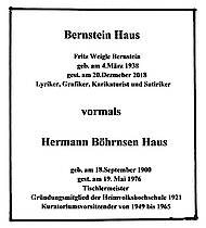 In einem Schreiben des "Öffentlichen Klägers beim Hauptausschuss des Kreises Rendsburg" und des "Vorsitzenden des Entnazifizierungsausschusses" vom 25. März 1948 heißt es in seinem "Entlassungszeugnis": "Hiermit wird bestätigt, dass Hermann Böhrnsen, geb. 18.9.1900, wohnhaft in Rendsburg, Gerhardstr. 11, auf Grund der Vorschriften des Gesetzes zur Fortführung und zum Abschluss der Entnazifizierung §§ 2, 6, als entlastet in die Gruppe V eingereiht worden ist."